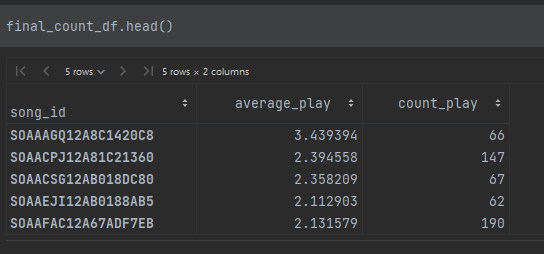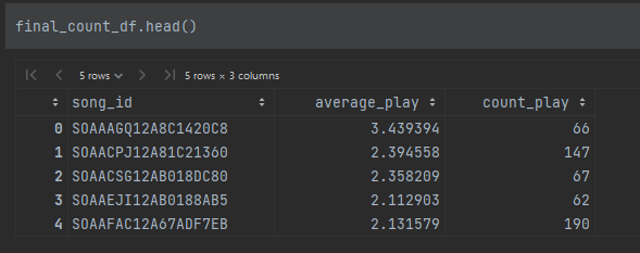 In the example below you’ll notice that while we have a “song_id” it is actually a 2 column DataFrame.